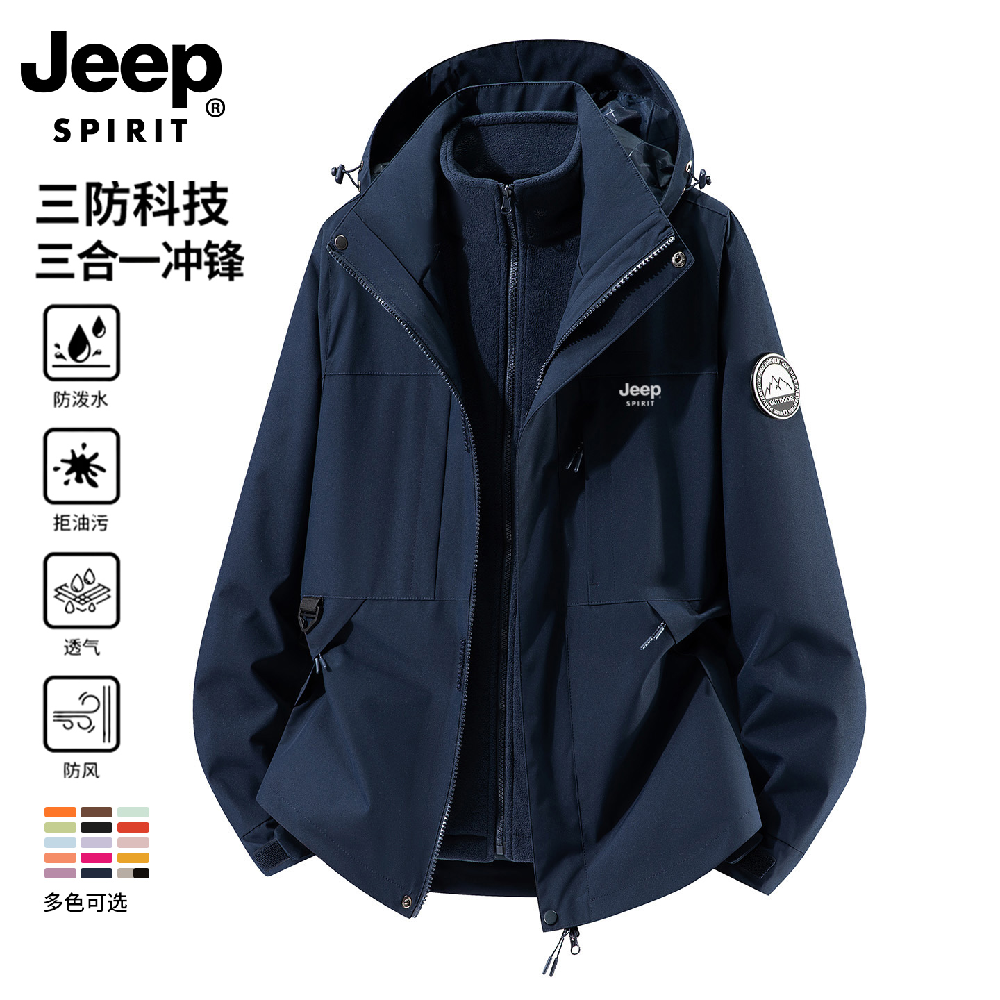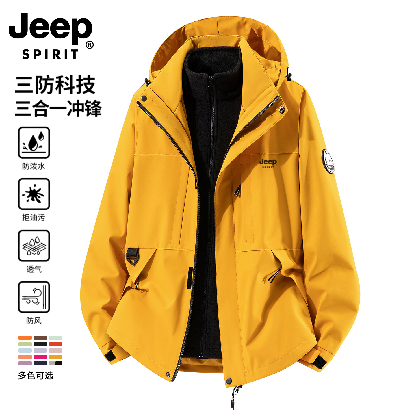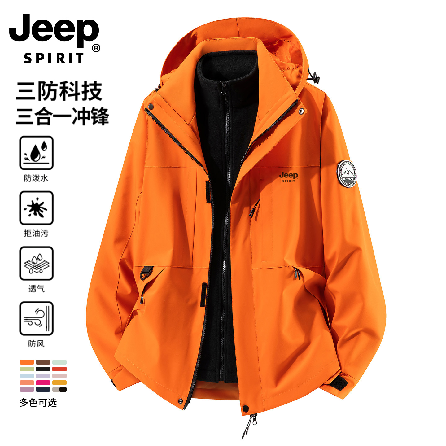 吉普冲锋衣男女款三合一2025新款秋冬季户外登山情侣夹克外套男士