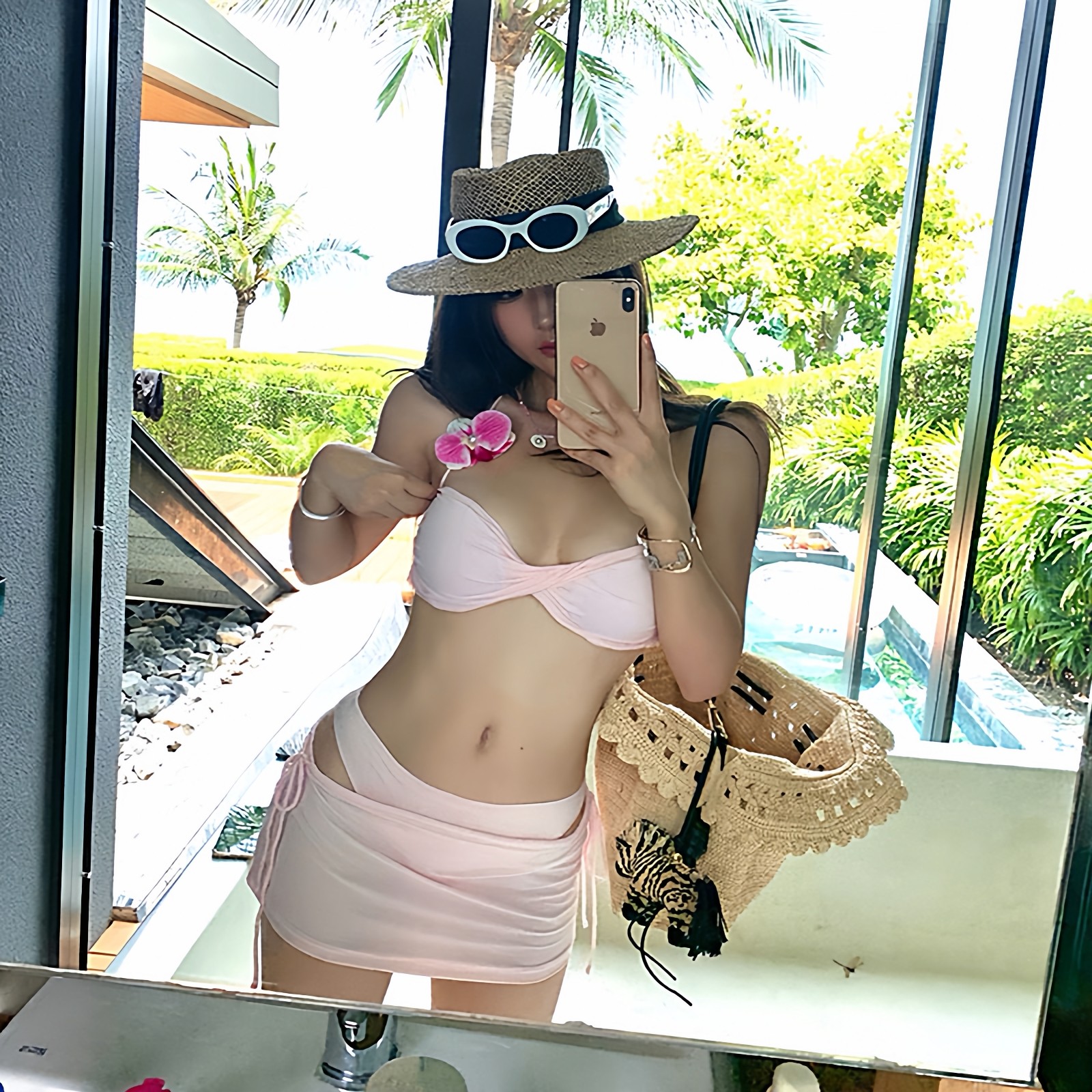 新款时尚性感辣妹无胸垫泳衣三件套海岛沙滩温泉度假泳装遮肚显瘦