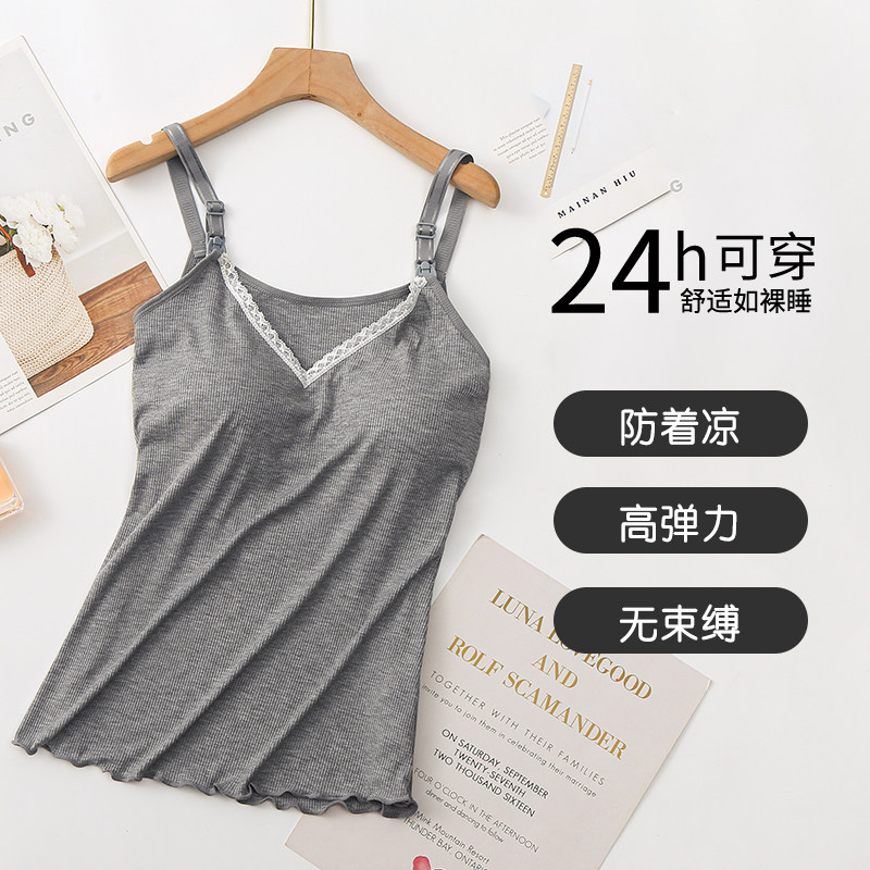 哺乳背心免穿内衣文胸夏季薄款喂奶怀期孕妇吊带专用大码式浦白色