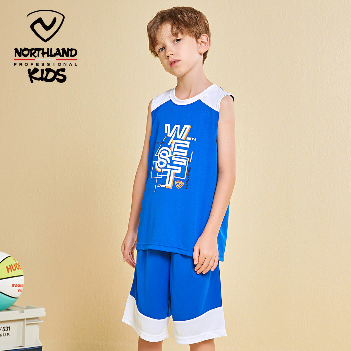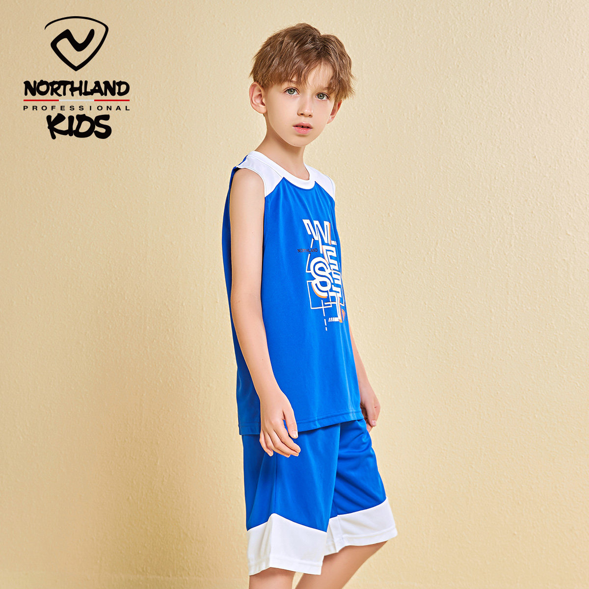 诺诗兰童装儿童套装2023夏装男童速干无袖两件套大童篮球套运动服