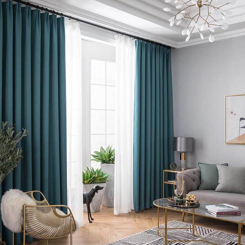 加厚纯色遮光彷棉麻窗帘布料简约现代米粒麻客厅卧室定制成品窗帘