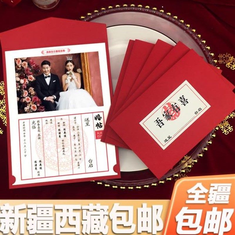 新疆西藏结婚请帖2023中式婚礼喜帖中国风婚宴照片请柬回门邀