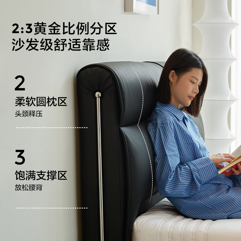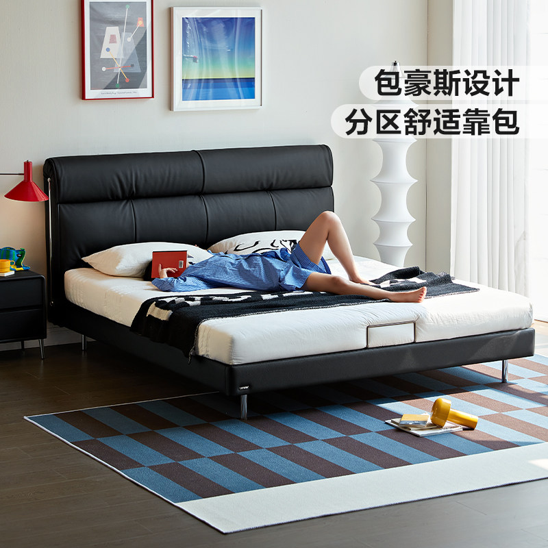 林氏家居2025新款主卧意式极简高级轻奢真皮大床1米8双人床PC580