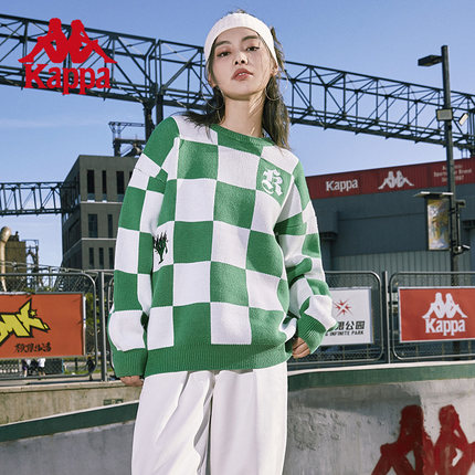 Kappa卡帕x Clawmoney联名毛衣男女棋盘格套头衫卫衣
