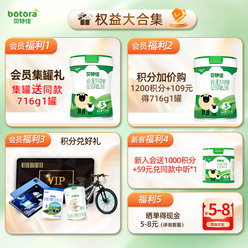 贝特佳旗舰店婴幼儿配方羊奶粉3段三段716g4-6罐组合1-3岁新国标