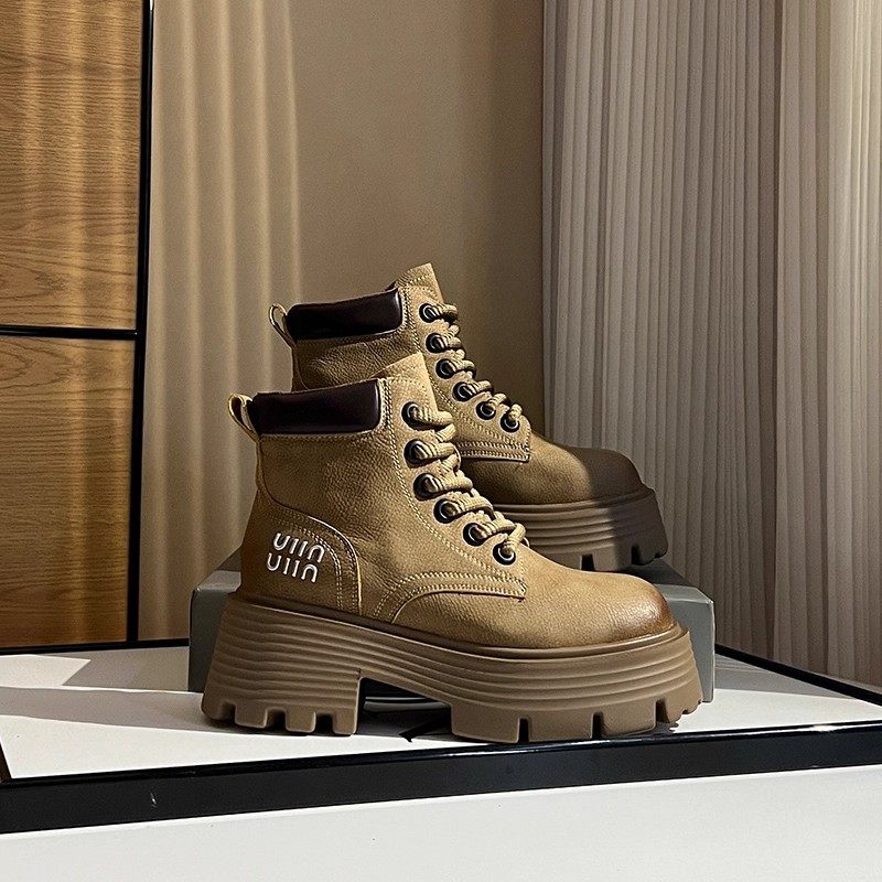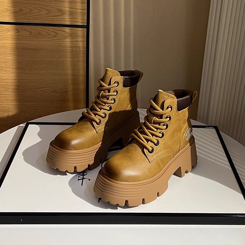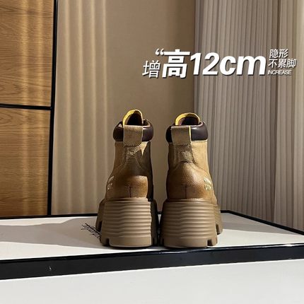 马丁靴2025春季短靴大黄靴子隐形内增高女鞋12cm厚底小个子矮子乐