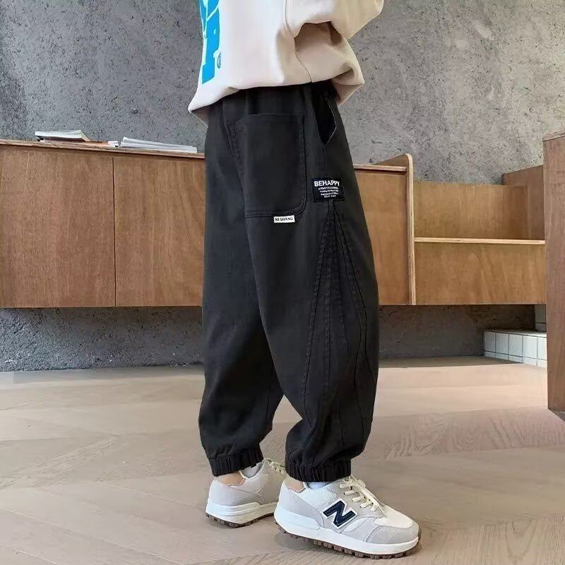 男童运动裤子2025秋冬新款中大童加绒长裤宽松休闲男孩潮流工装裤