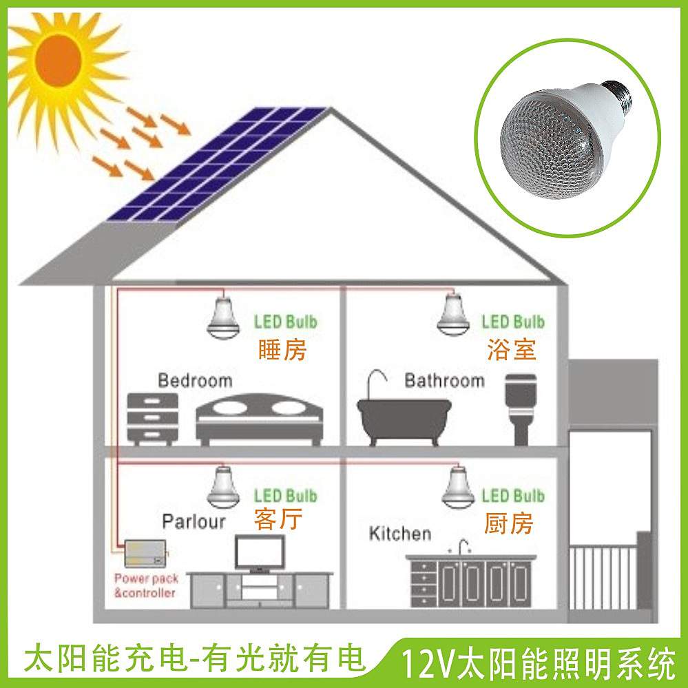 12V太阳能照明灯 25W输出 太阳能发电小系统光伏发电照明【顺丰】