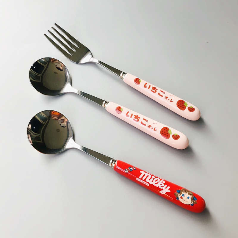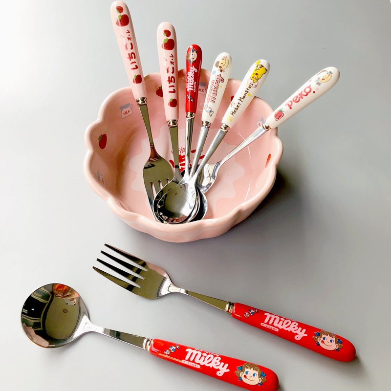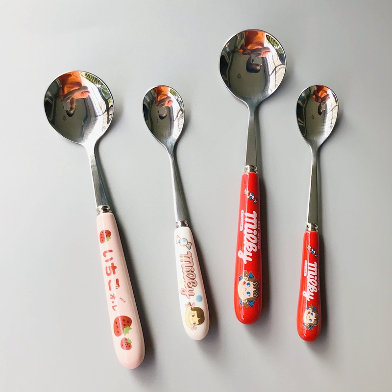 少女心卡通创意陶瓷手柄不锈钢搅拌勺不二家小勺可爱图案草莓勺