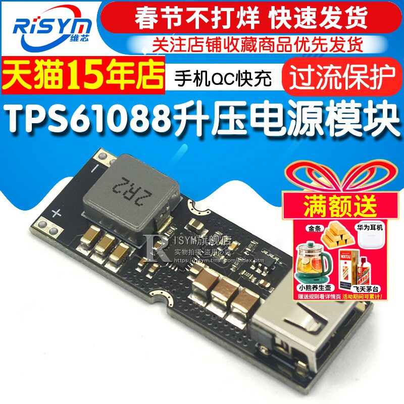 TPS61088升压快充电源模块 3.2V3.7V4.2V转5V9V12V手机QC快速充电