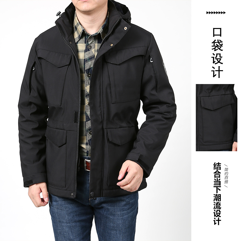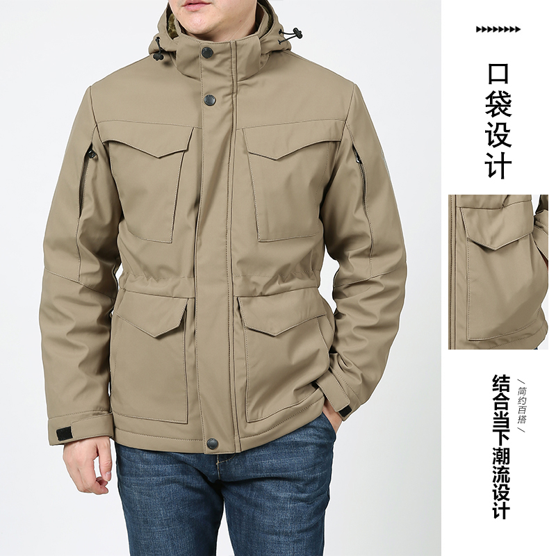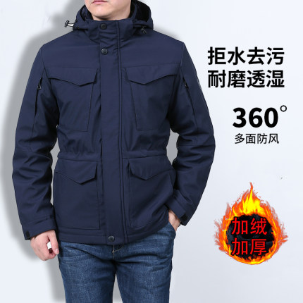 加绒棉衣男2025新款加厚冬季工装外套多口袋防风防水冲锋衣棉服潮