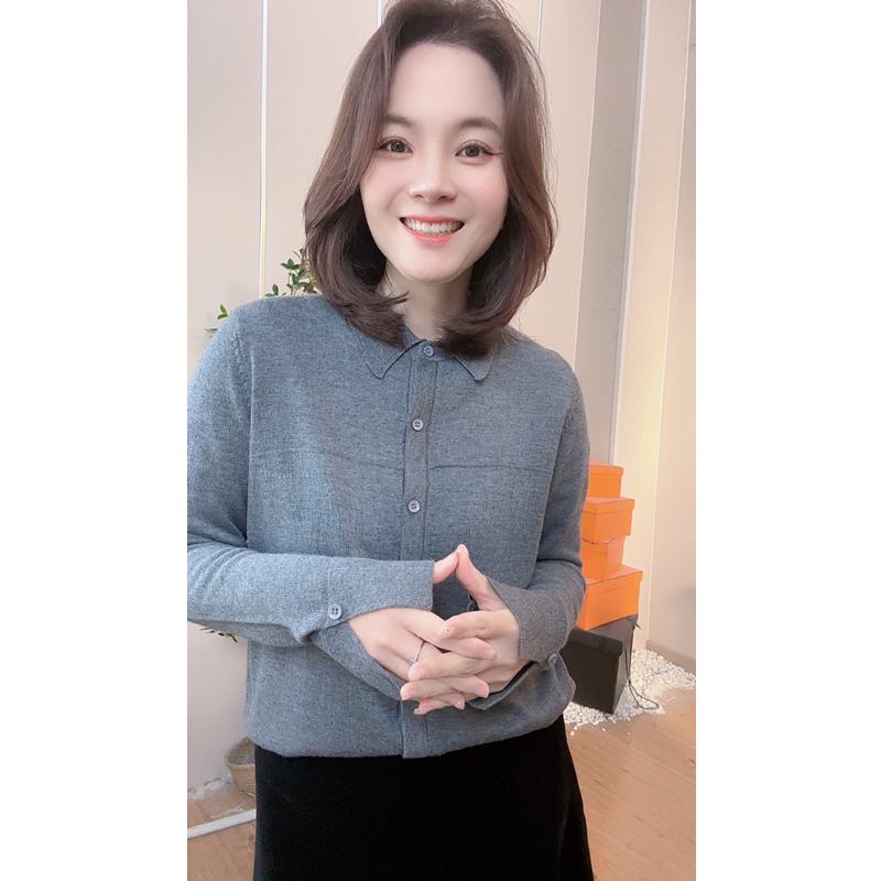 春季新款衬衫领纯色设计感洋气翻领毛衣打底衫女士套头上衣针织衫