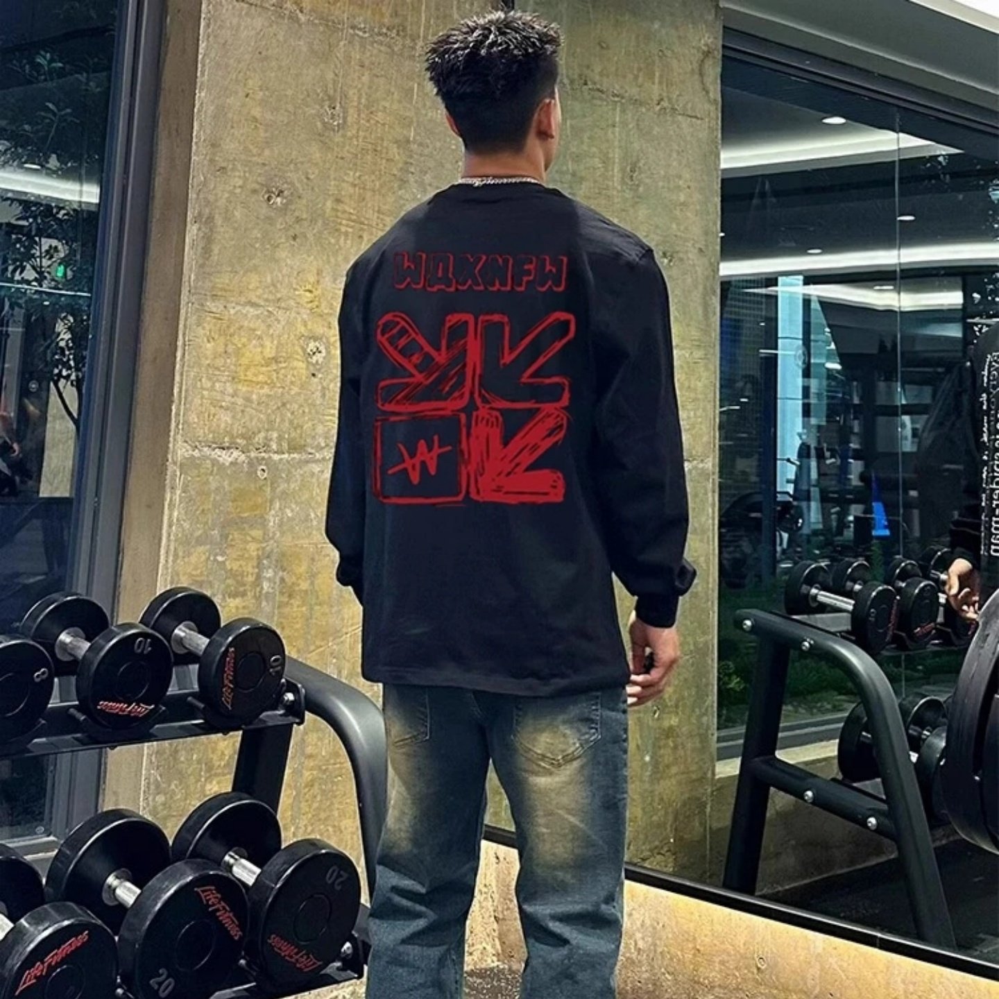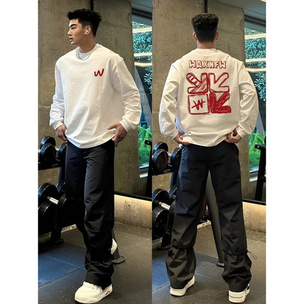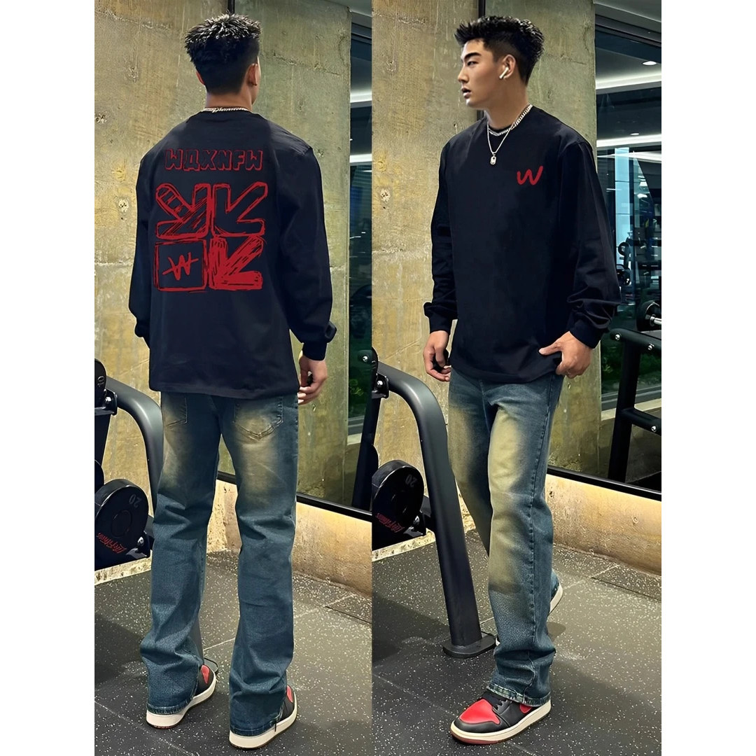 【重磅纯棉】美式休闲长袖T恤男士宽松复古潮流百搭潮流小众港风