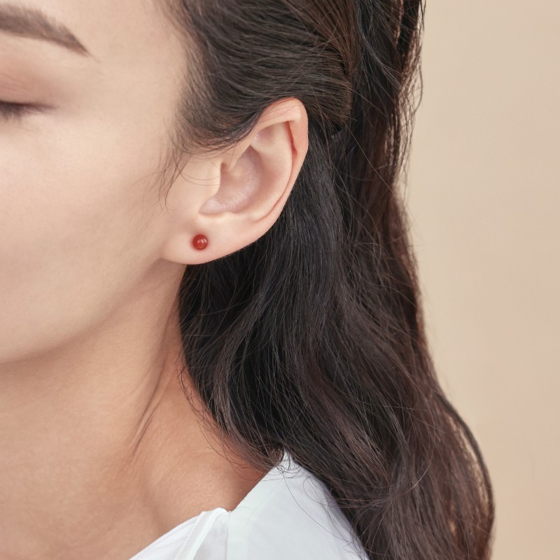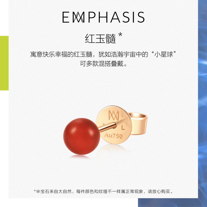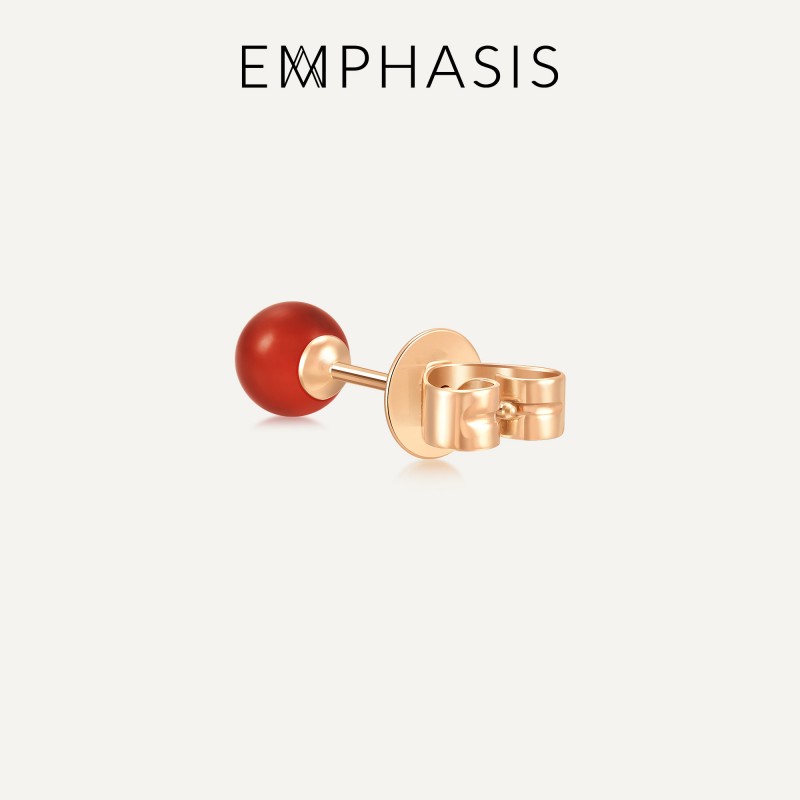 周生生旗下品牌EMPHASIS「宇」18k玫瑰金红玉髓耳钉单只90754E