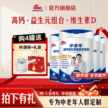 明一中老年高钙高铁羊奶粉700g*4罐不添加蔗糖送礼健康老人