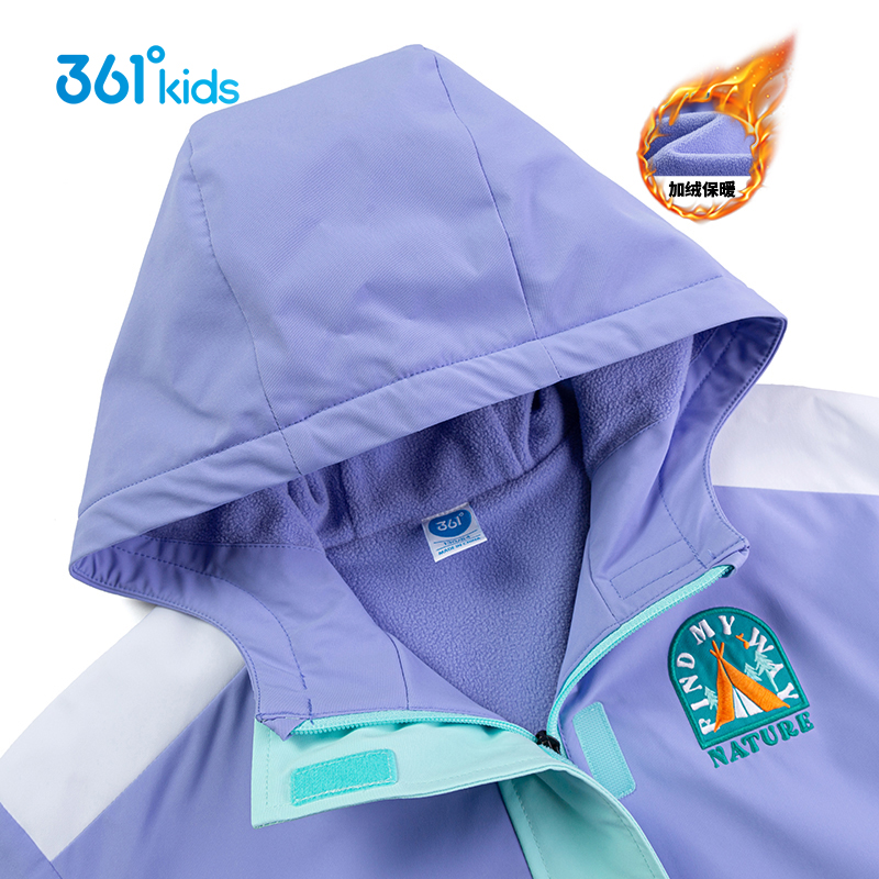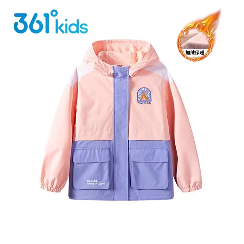361童装 女童加绒冲锋衣2023春季新款中大童儿童休闲保暖连帽风衣