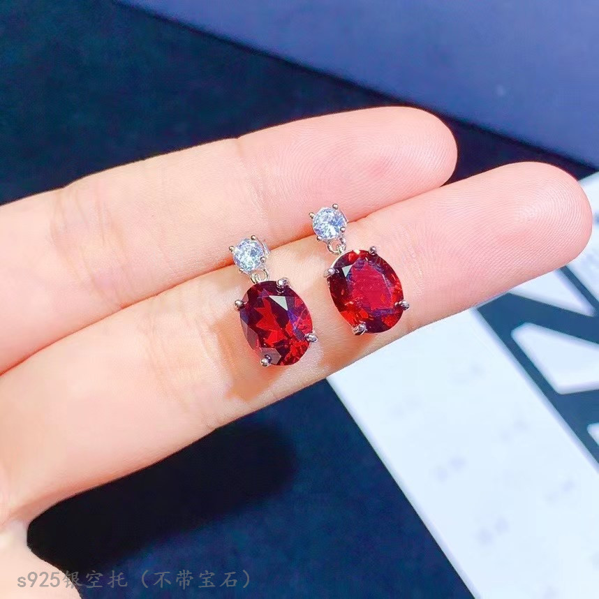 s925纯银耳钉空托 椭圆形8*10mm镶钳石榴石 水晶石 简单四爪 气质