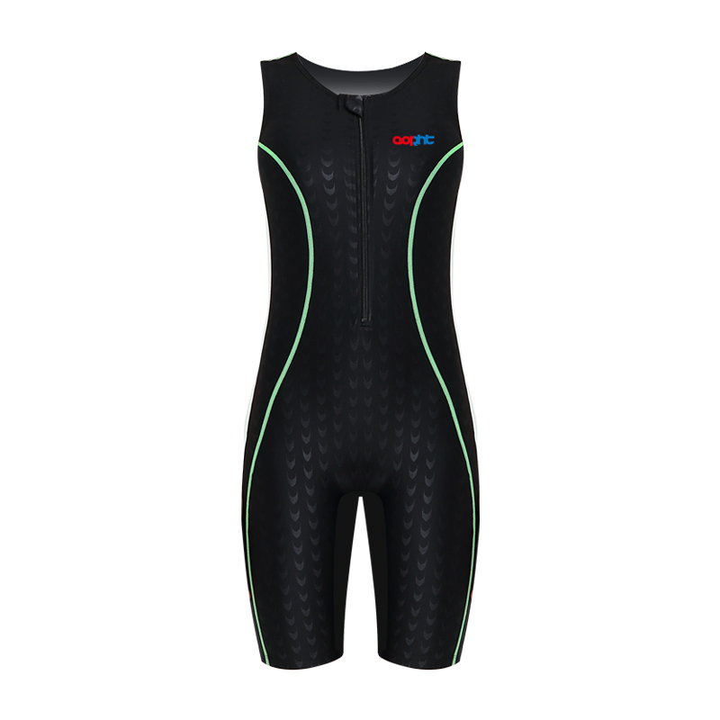 男女鲨鱼皮专业连体泳衣女带胸垫无袖中腿保守防晒速干温泉泳衣