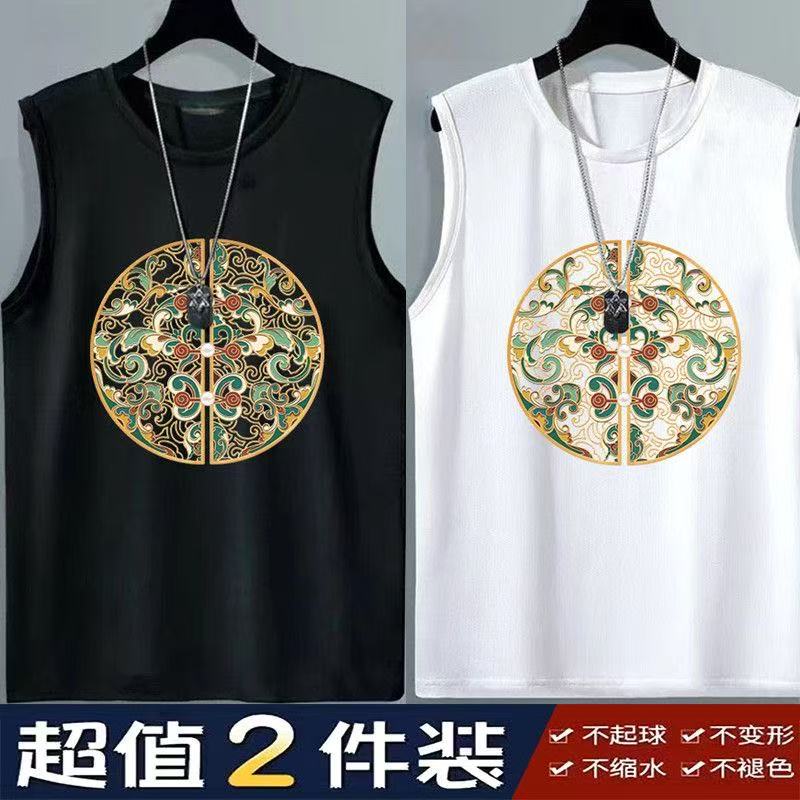 大码无袖背心夏季潮牌健身运动宽松坎肩男士新款国潮打底马甲t恤