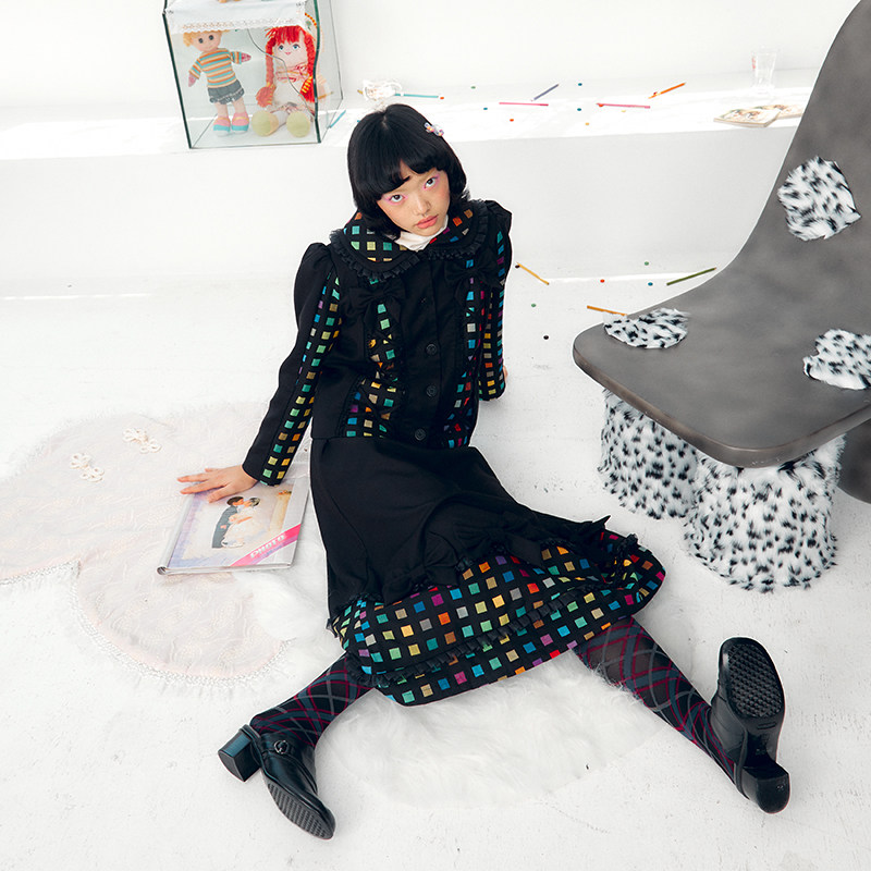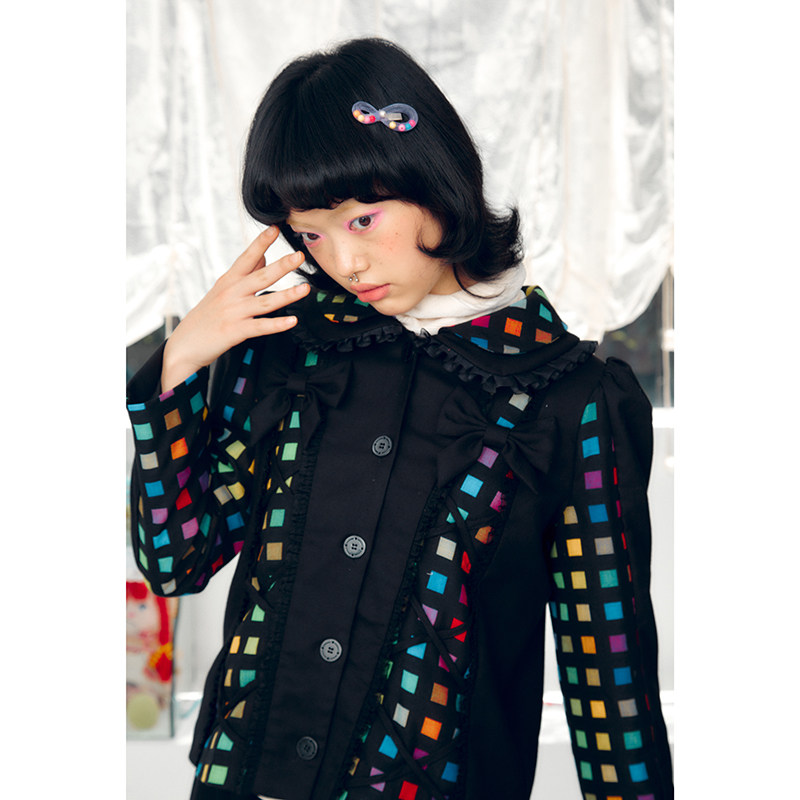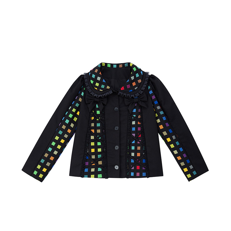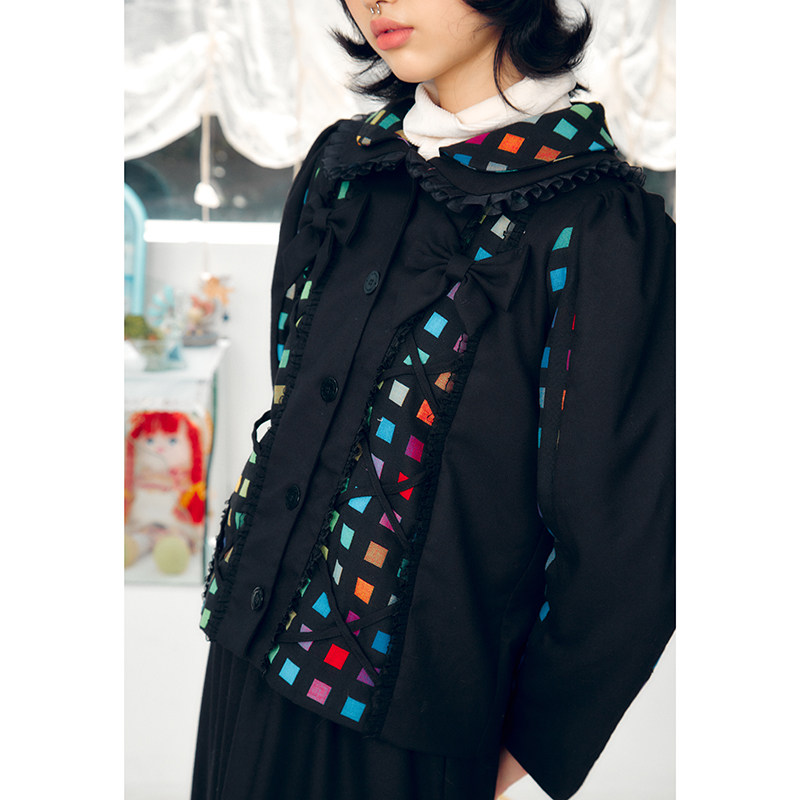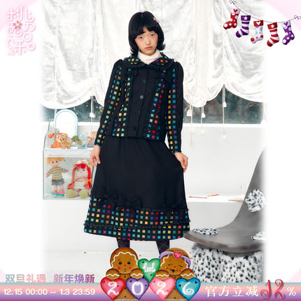 乐饿乐 昭和电子彩盘蝴蝶结西服材质裙套装