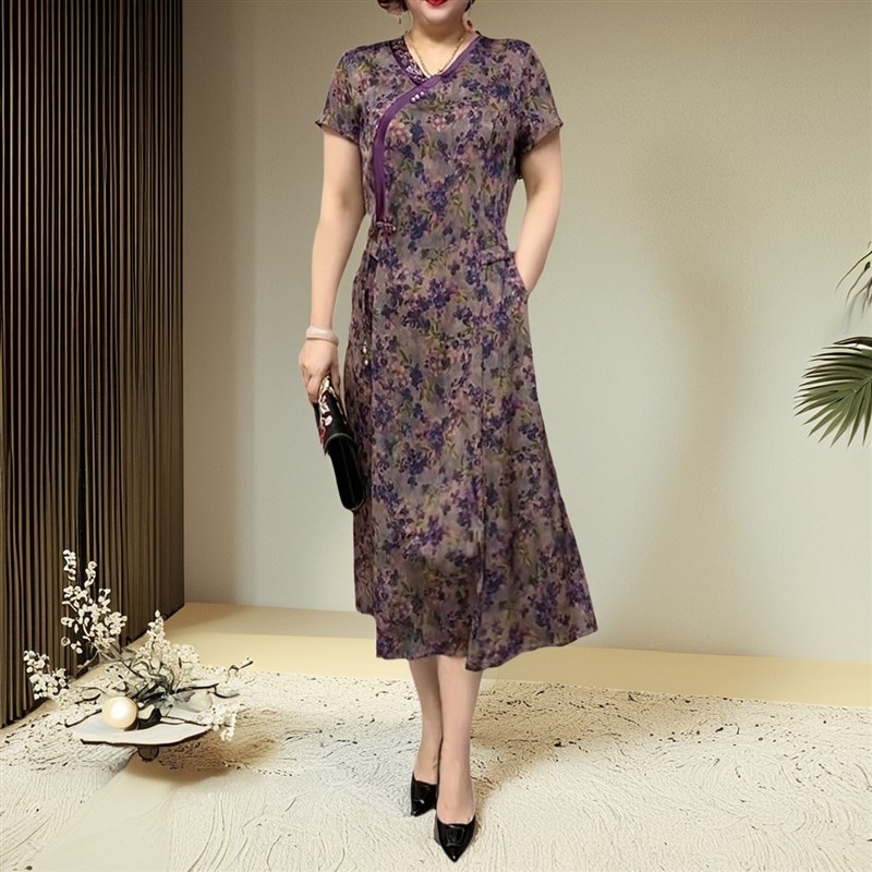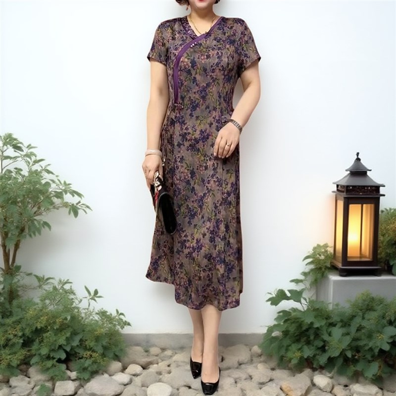 妈妈夏季短袖连衣裙碎花长裙时尚显示洋气中老年大码女装连衣裙子
