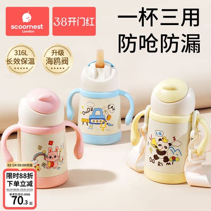 科巢儿童保温杯带吸管两用宝宝鸭嘴杯婴幼儿学饮杯奶瓶喝水杯子壶
