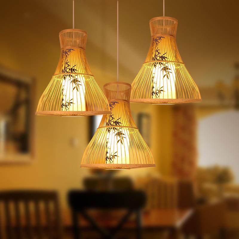 竹艺吊灯个性餐厅灯过道灯中式茶楼创意竹编灯单头客栈工程三头灯