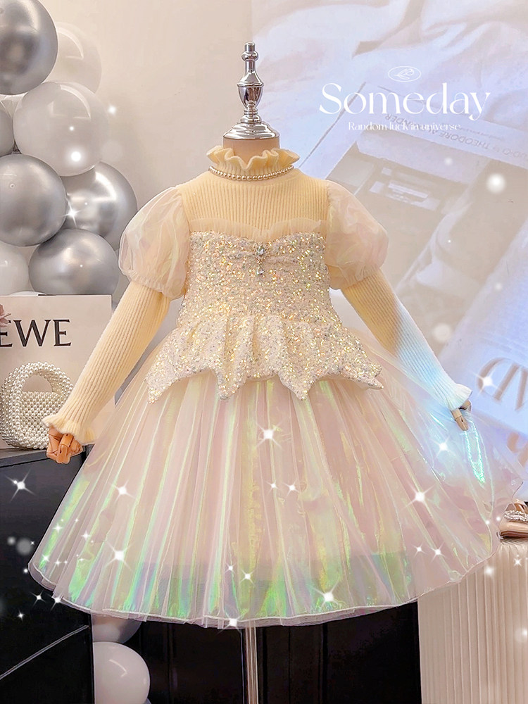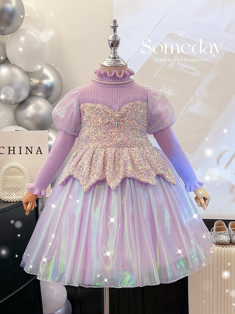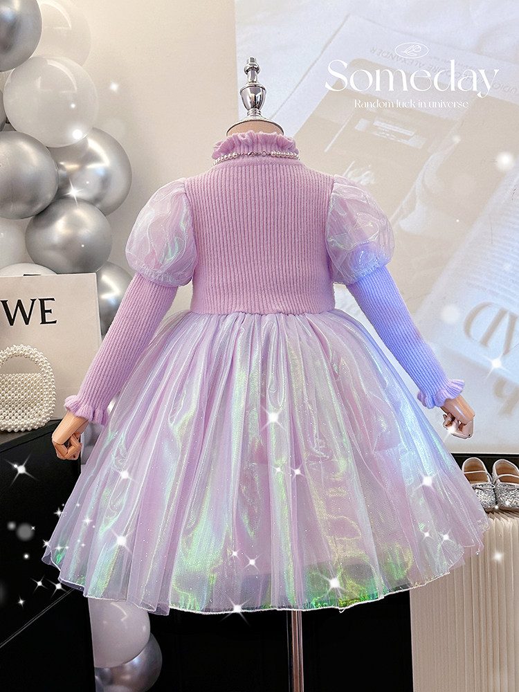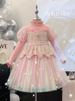 高端女童公主裙秋冬新款洋气小女孩针织毛衣裙子儿童美人鱼连衣裙