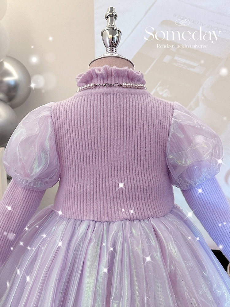 女童秋冬针织加绒公主连衣裙