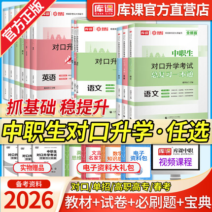 库课2026中职生对口升学英语数学语文复习资料教材试卷中专升大专高职单招扩招全国通用考试用书高考职高真题试卷广西湖南四川重庆
