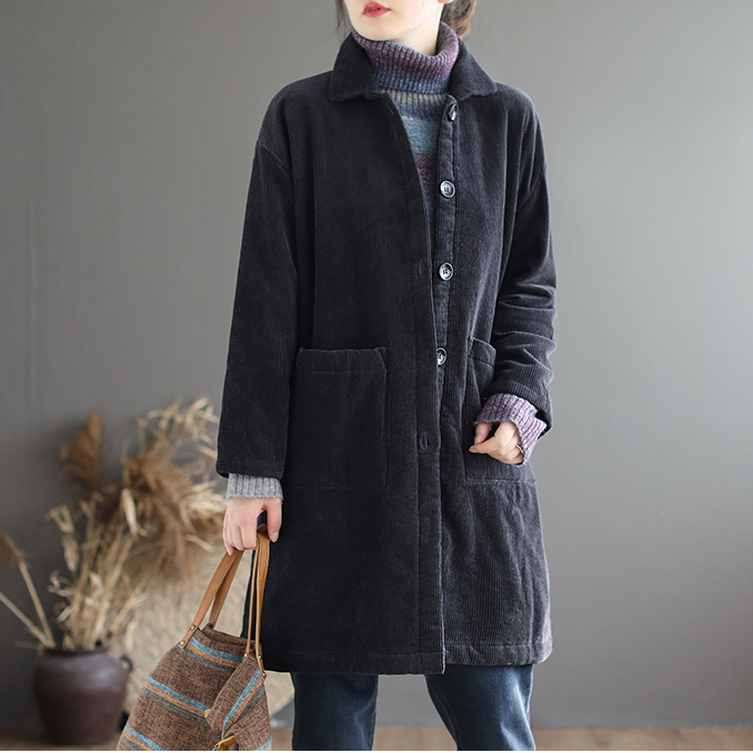 文艺灯芯绒棉衣中长款棉服冬季加绒加厚保暖条绒外套女~清仓活动