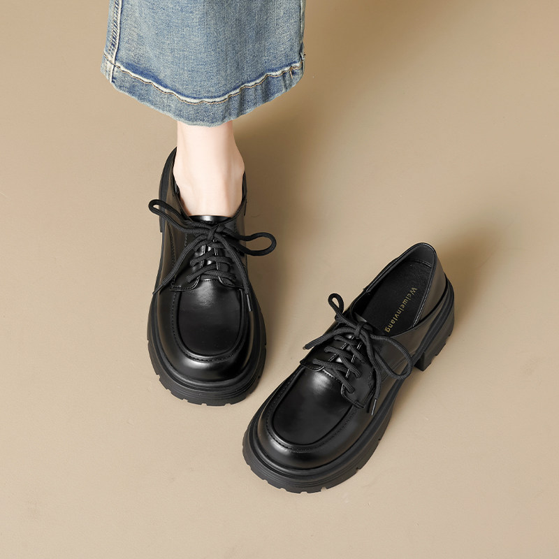 厚底增高小皮鞋女2025新款秋季配裙子单鞋英伦系带乐福鞋大码女鞋