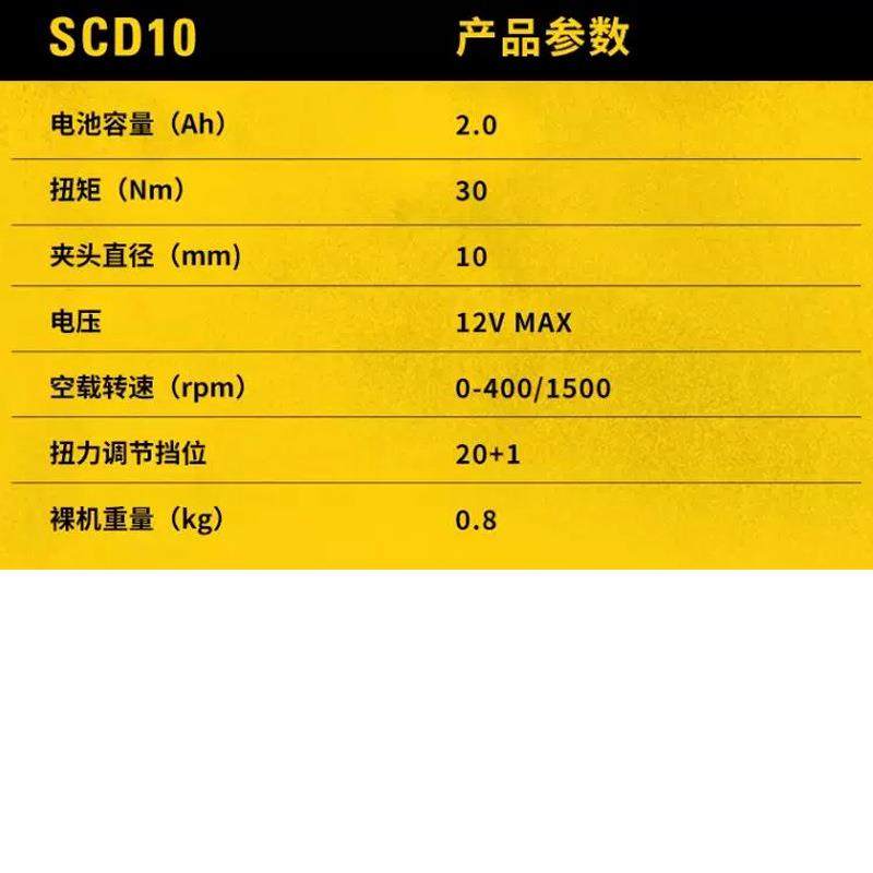 史丹利电钻12V多功能冲击钻锂电钻电动螺丝刀家用手电钻SCD10D2K
