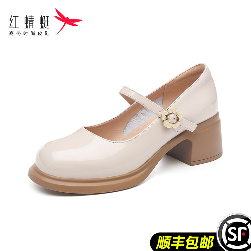 红蜻蜓女鞋玛丽珍单鞋中式鞋子配裙子漆皮亮皮小皮鞋法式粗跟单鞋