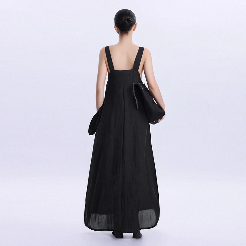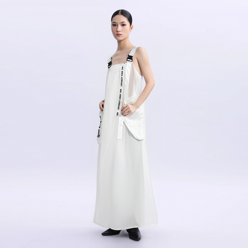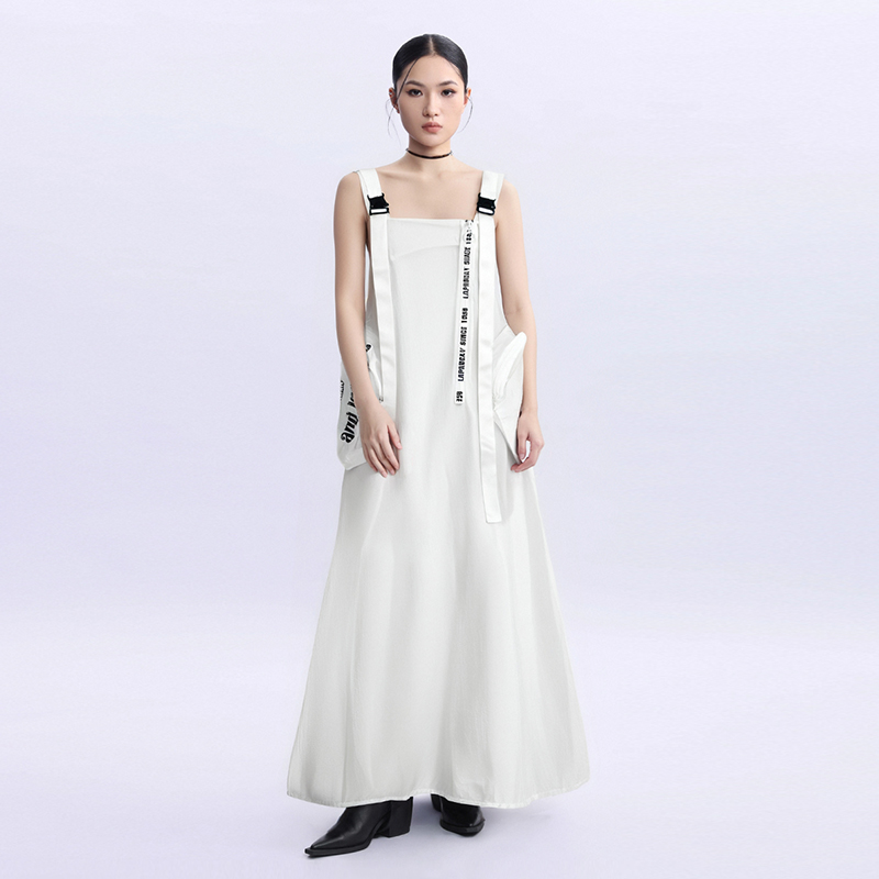 La pargay/纳帕佳背带连衣裙2025春夏新款个性设计感A字宽松长裙
