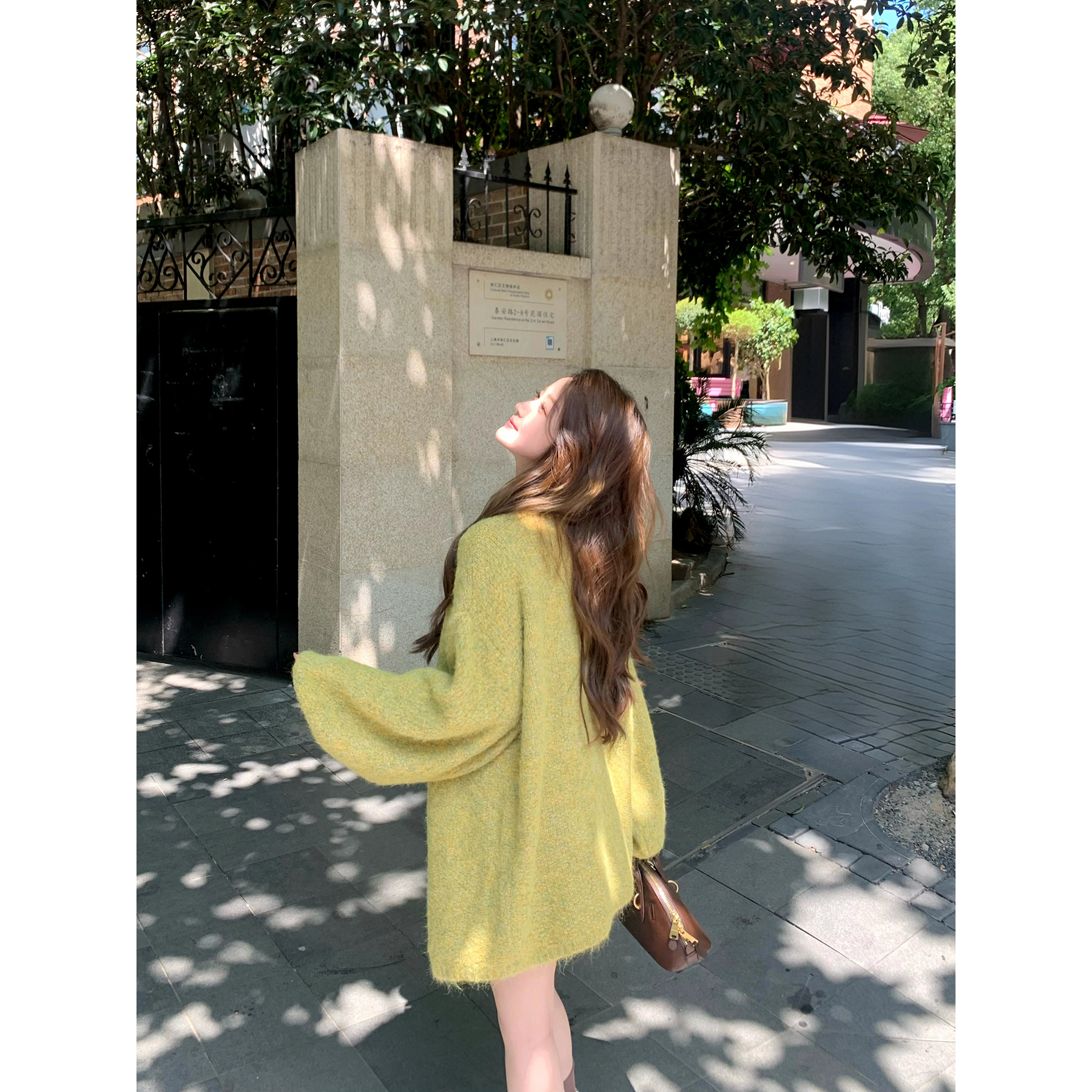 佐佐家小个子纯色慵懒羊毛针织开衫外套秋季女中长款宽松毛衣上衣