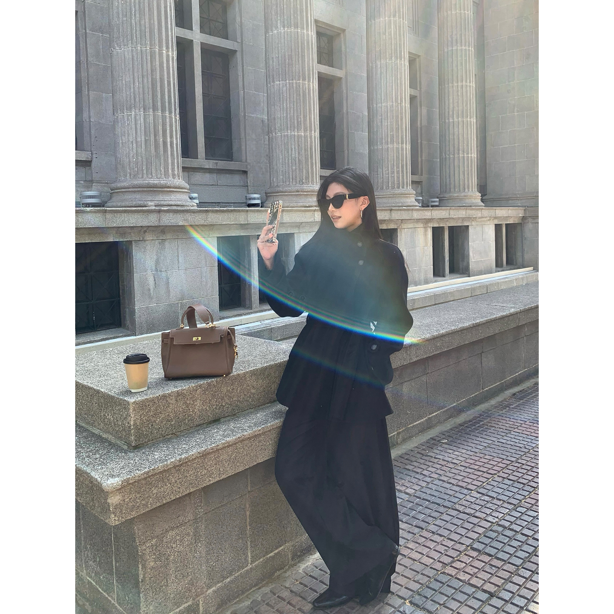 pusumede 暮光之城 黑色绵羊毛立领呢子外套女高级感短款毛呢大衣