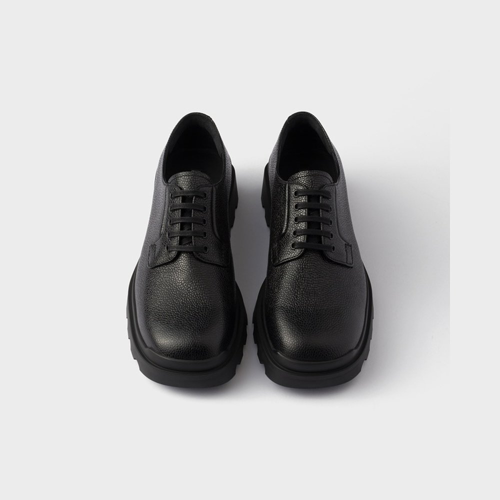 自营欧洲直邮Prada普拉达 男士黑色小牛皮系带开合皮鞋德比鞋