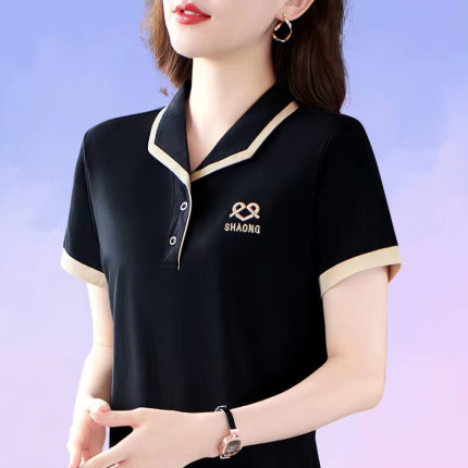 2025年夏季短袖T恤女中年妈妈女装洋气减龄宽松大码polo打底衫女