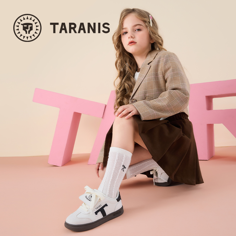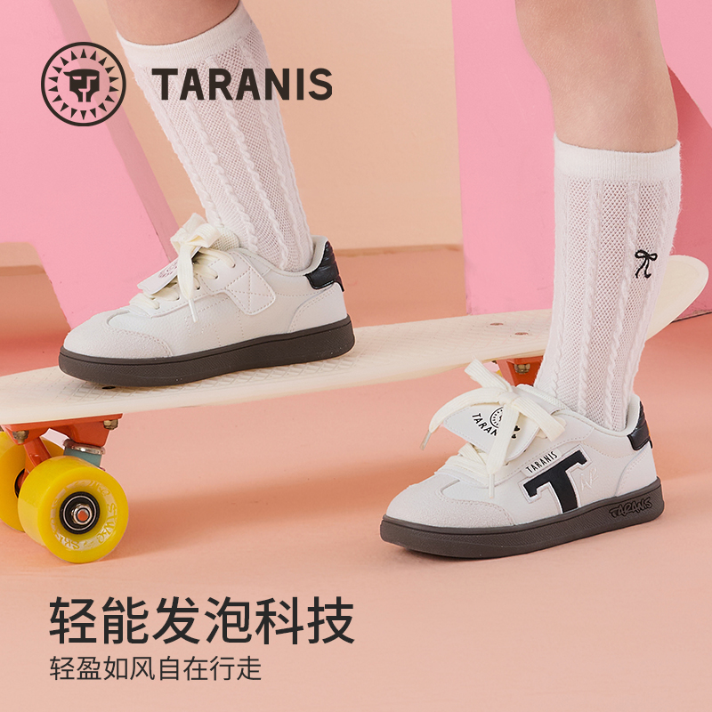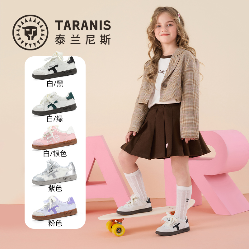 泰兰尼斯儿童亲子德训鞋秋季新款男童板鞋女童复古银色芭蕾盖盖鞋