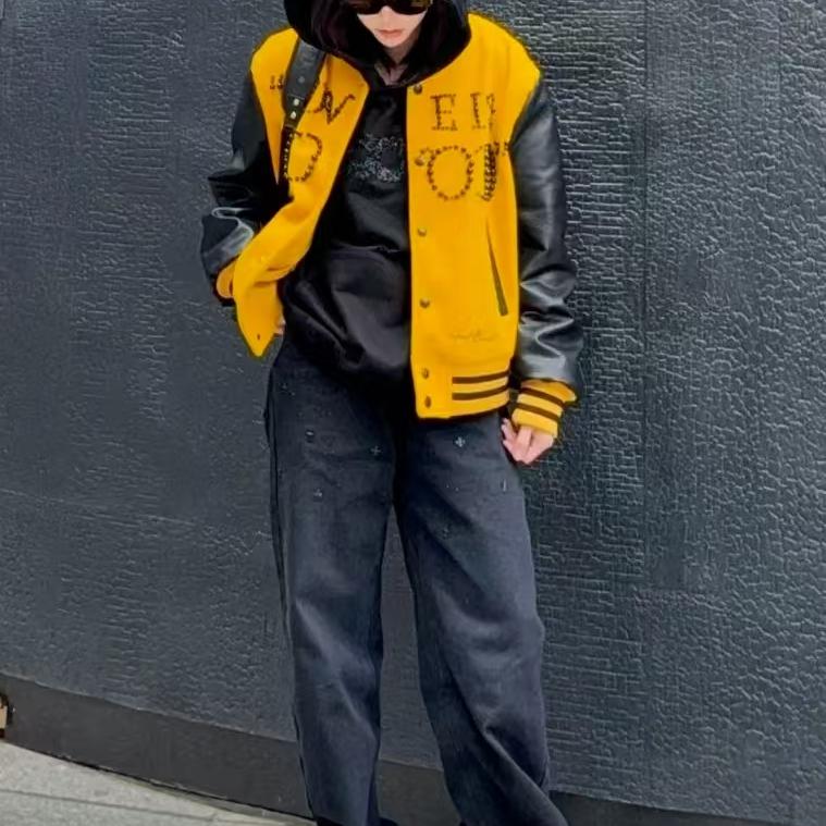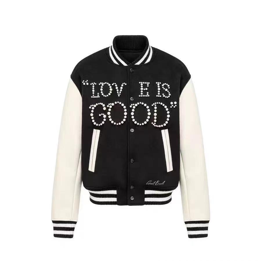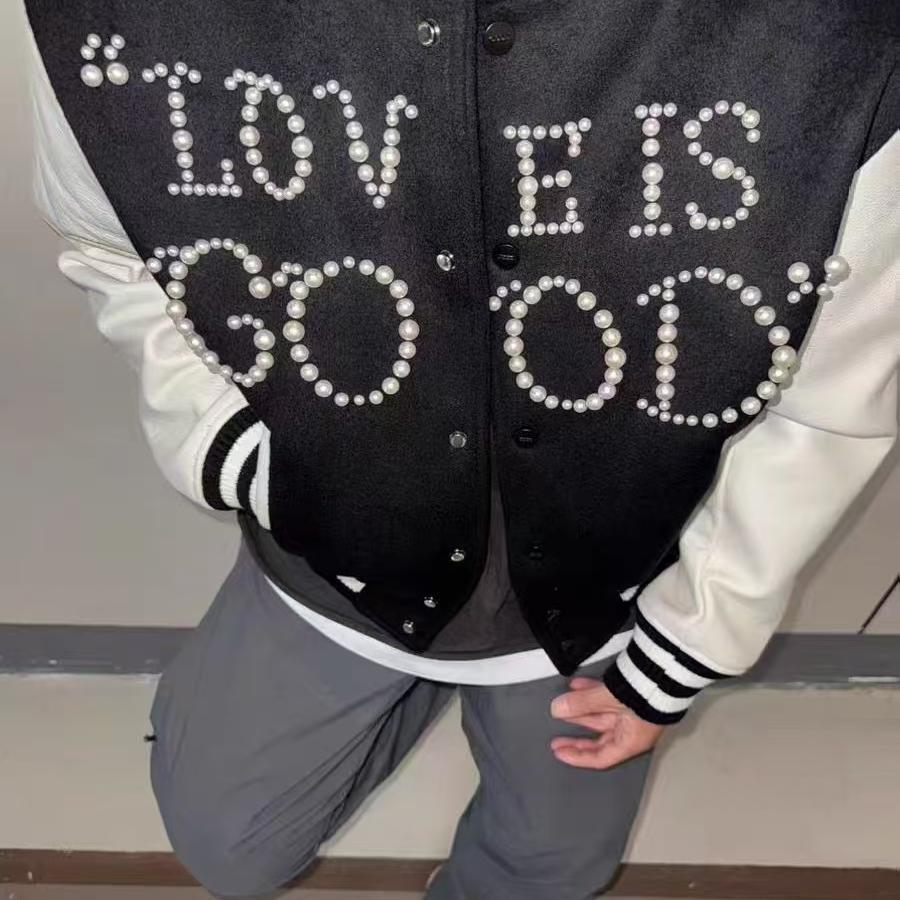 买手店GOOD经典棒球服外套珍珠外套刺绣皮革拼接立领夹克男女