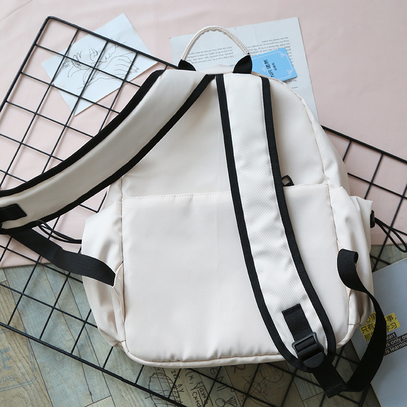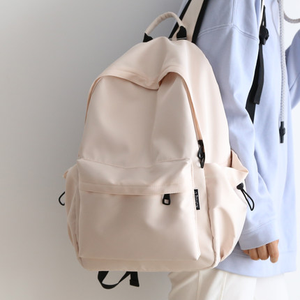 NR简约百搭纯色双肩包女书包男大学生初中生轻便登山旅游双肩背包