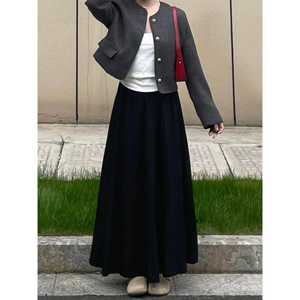 黑色a字半身裙梨型身材遮胯春季大码女胖mm长裙到脚踝超长款裙子