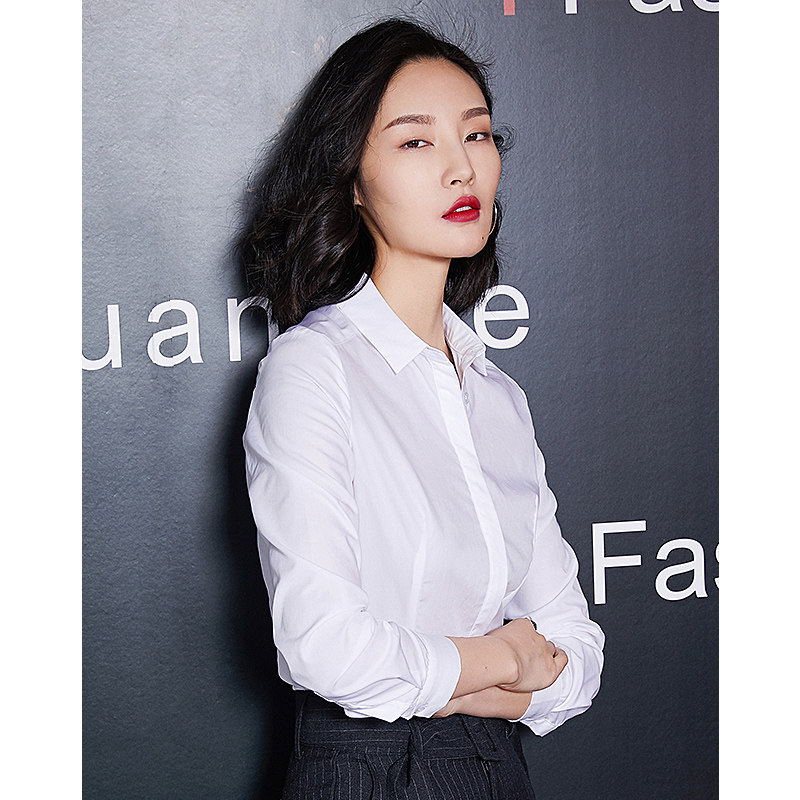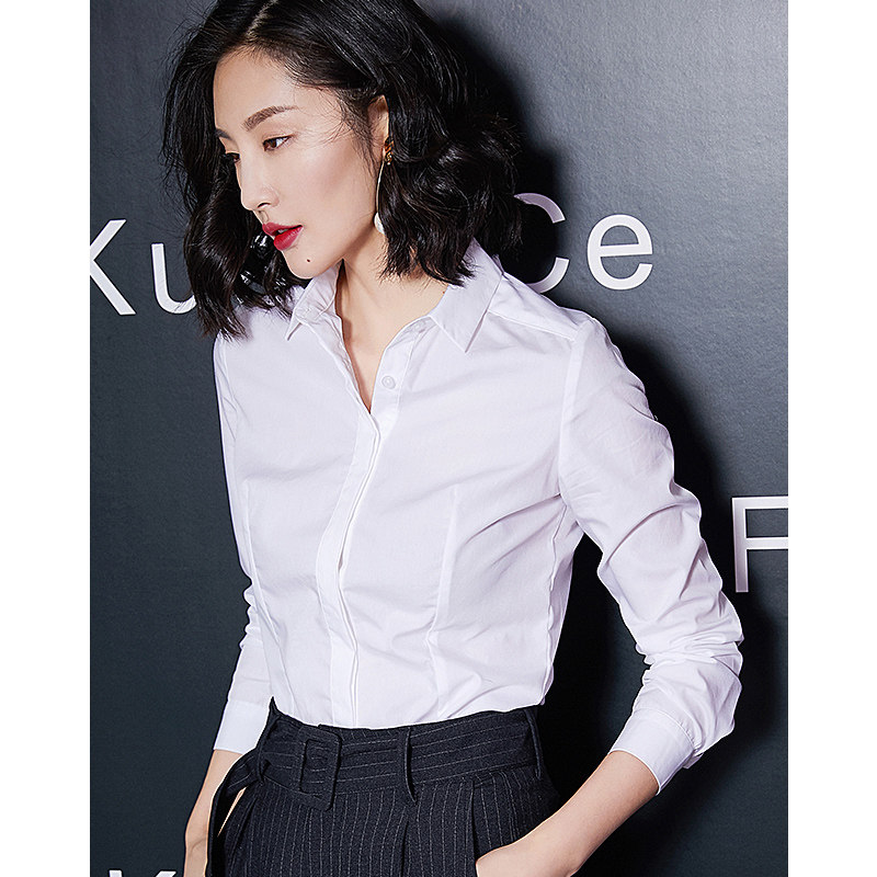 匡册白色衬衫女秋新款长袖暗扣设计不透肉通勤职业装打底工装衬衣