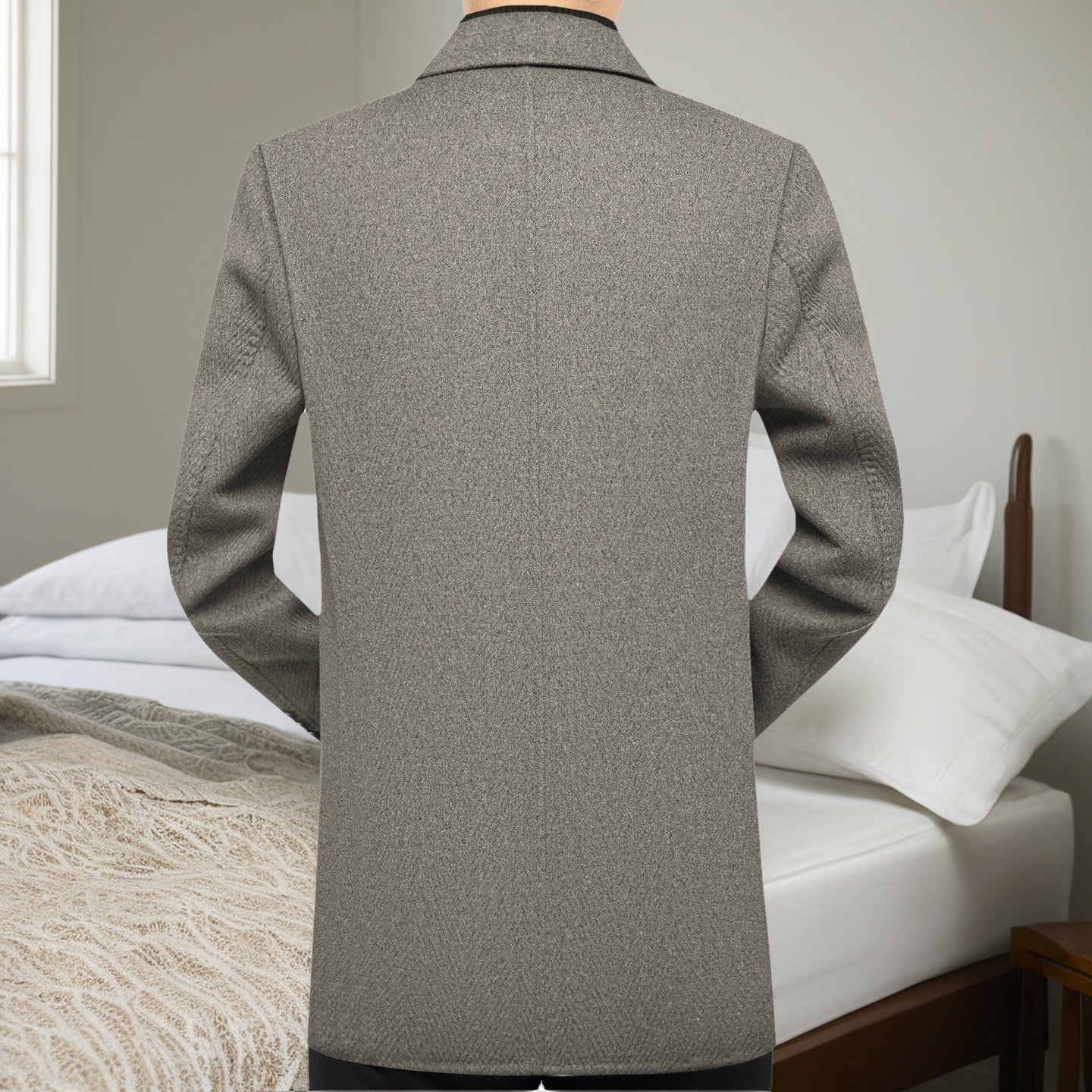 翻领羊毛呢大衣外套男双面呢休闲新品中青年爸爸装秋冬季厚款抗寒