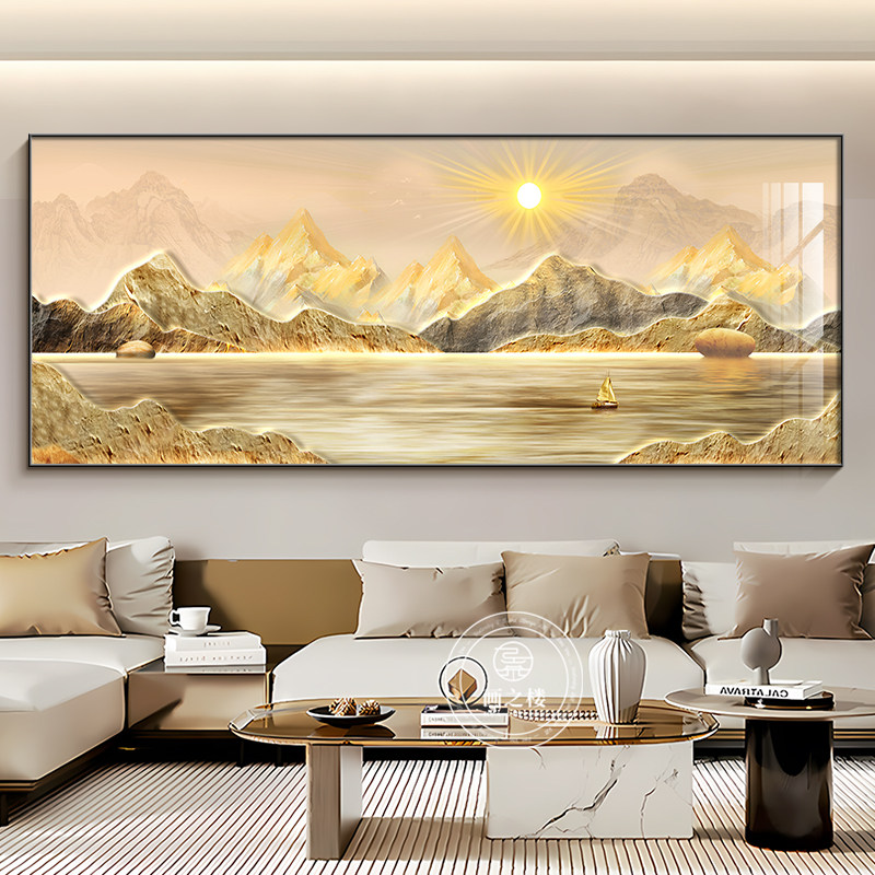 聚宝盆客厅装饰画东墙聚财山水画领导办公室挂画高档大气横幅壁画