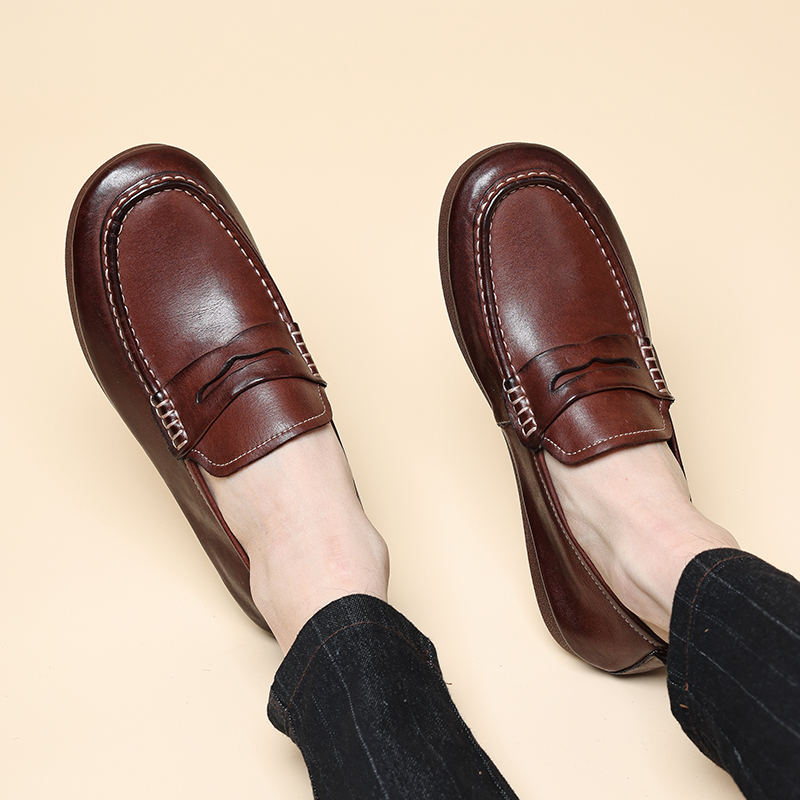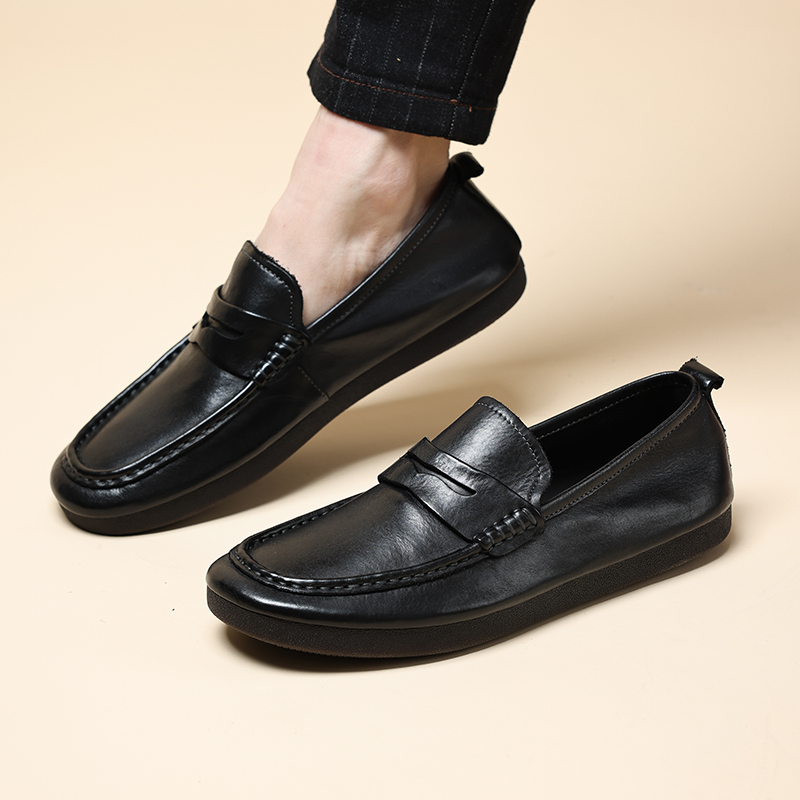 水洗工艺高端马皮乐福鞋软皮软底休闲皮鞋简约百搭懒人鞋豆豆鞋男