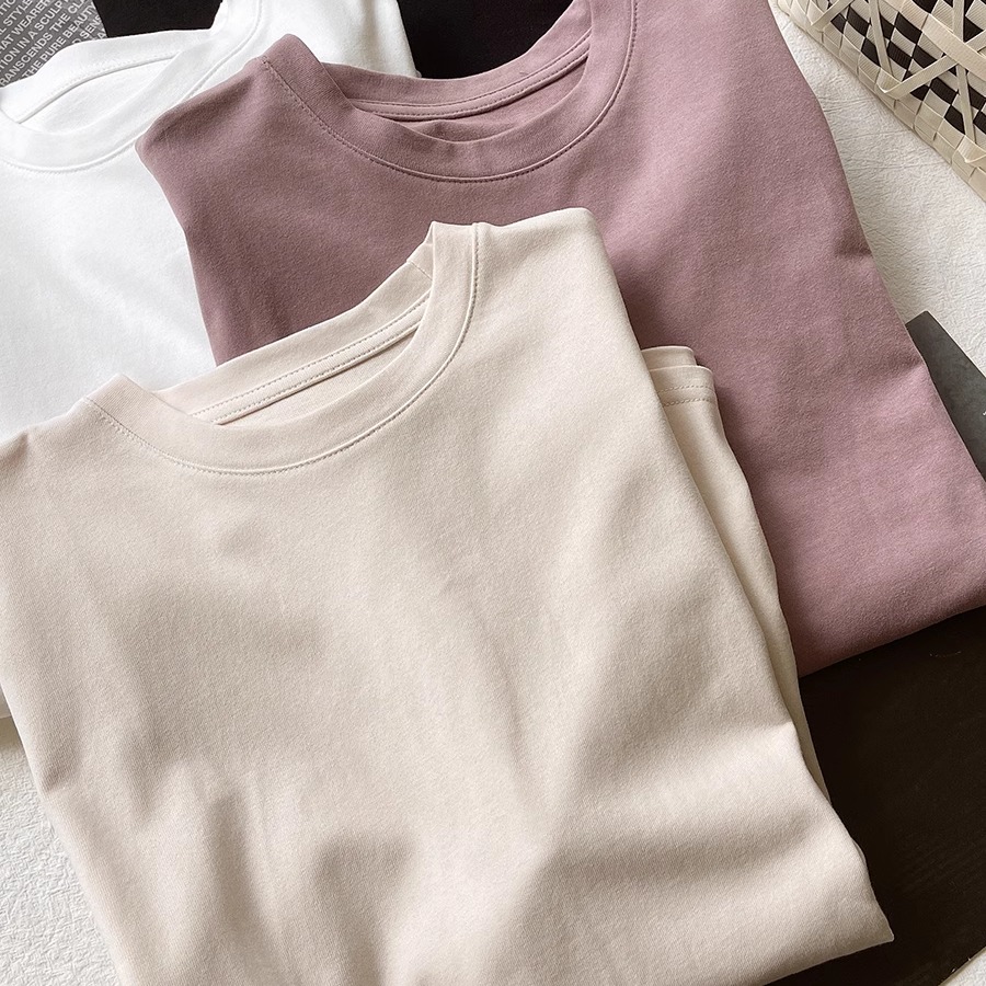 纯棉圆领长袖T恤女2025秋季新款宽松显瘦袖口纽扣纯色内搭打底衫