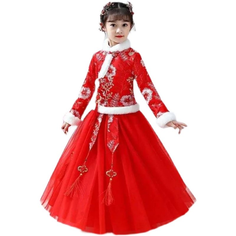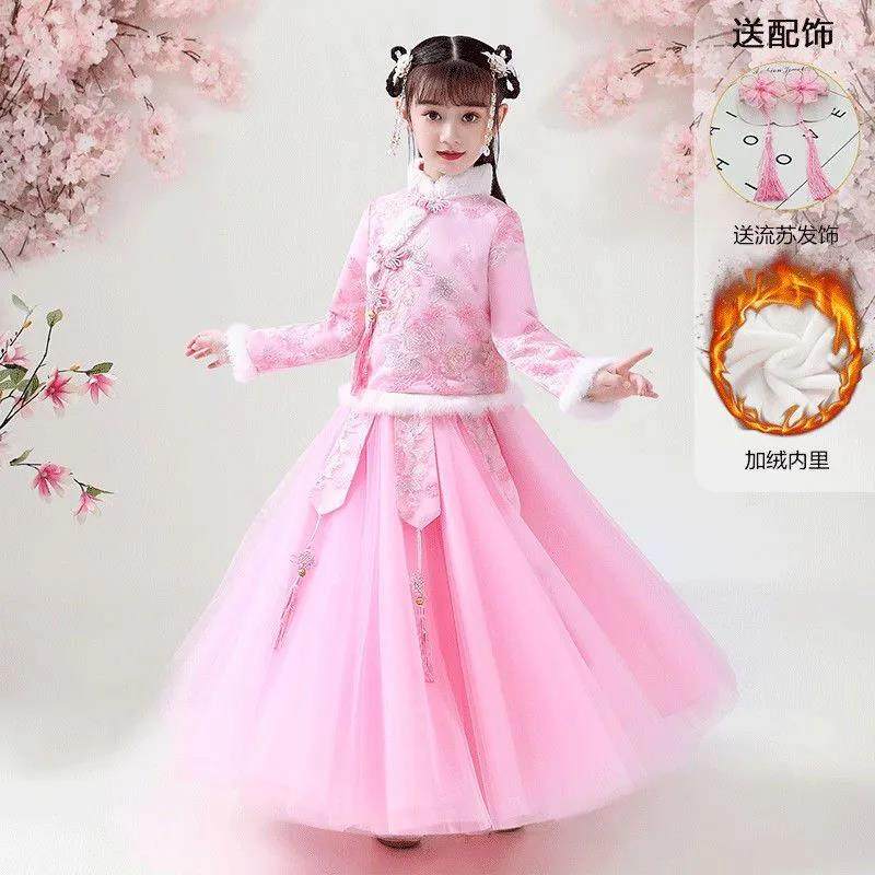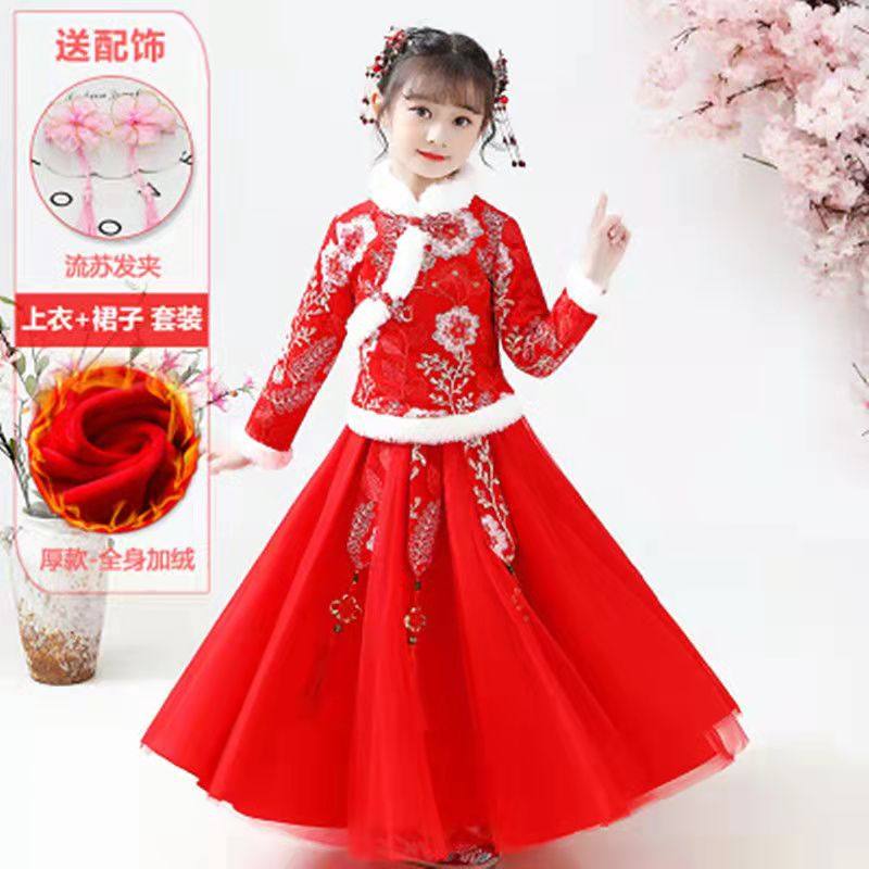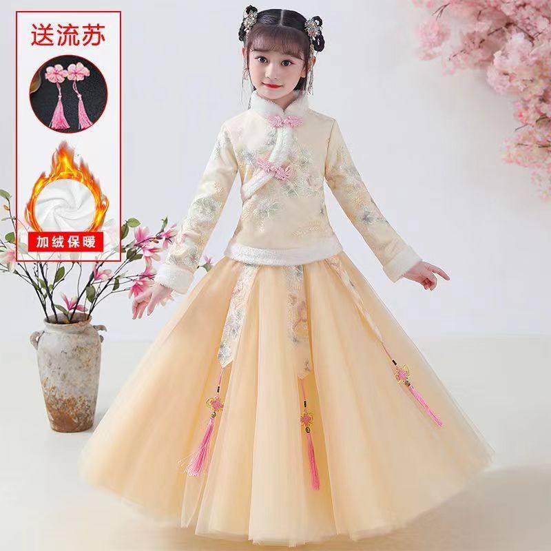 汉服女童秋冬加绒加厚仙女裙中国风儿童古装小女孩旗袍唐装拜年服