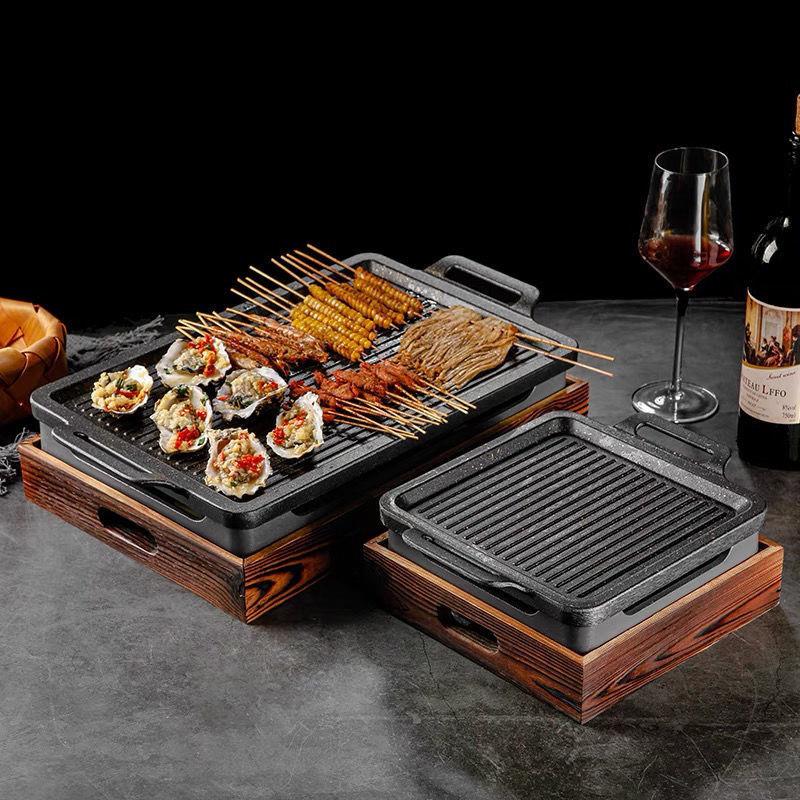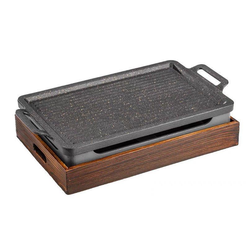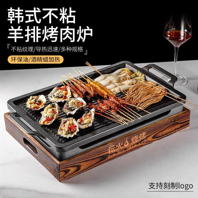 韩式不粘羊排烤盘铝合金烤肉盘烧烤炉酒精商用餐厅烤肉串串保温炉